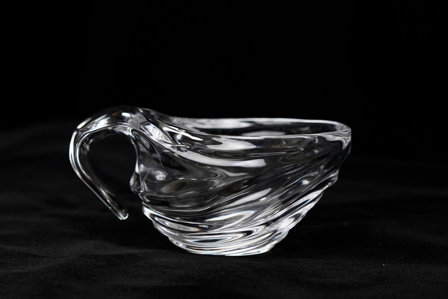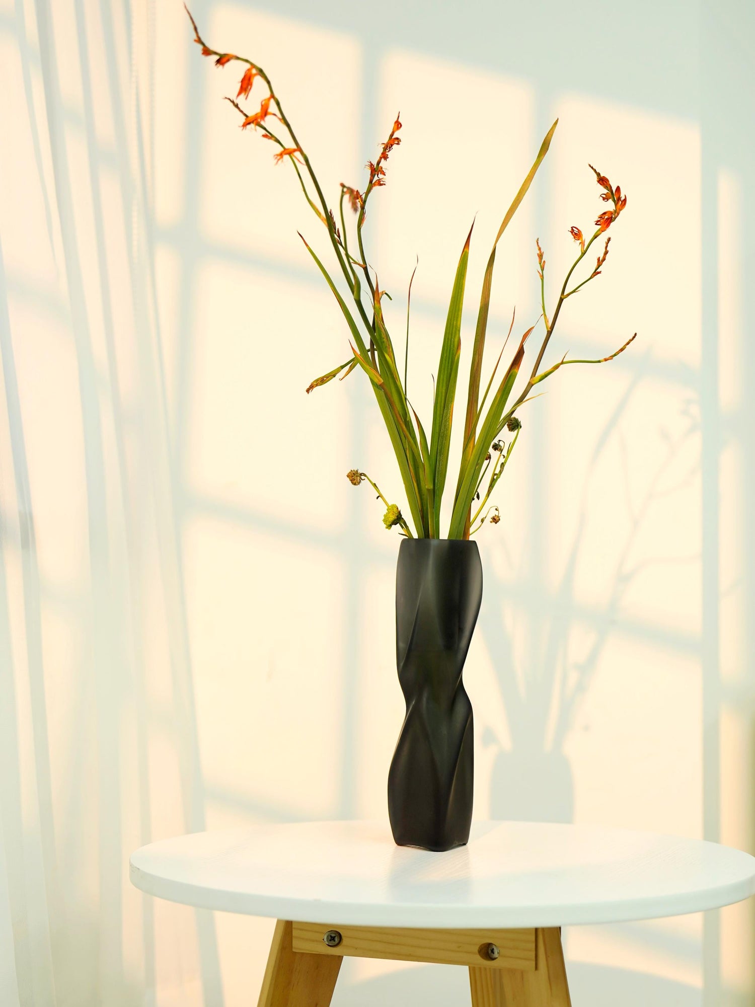The "Yu Jing" Transparent Sculptural Glass Vase features flowing lines and high-quality glass that create a dynamic light and shadow effect, adding artistic elegance to your home decor.